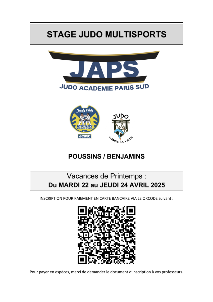 Le JUDO ACADEMIE PARIS SUD organise son stage Judo/Multisports lors de la deuxième semaine des vacances de Printemps.