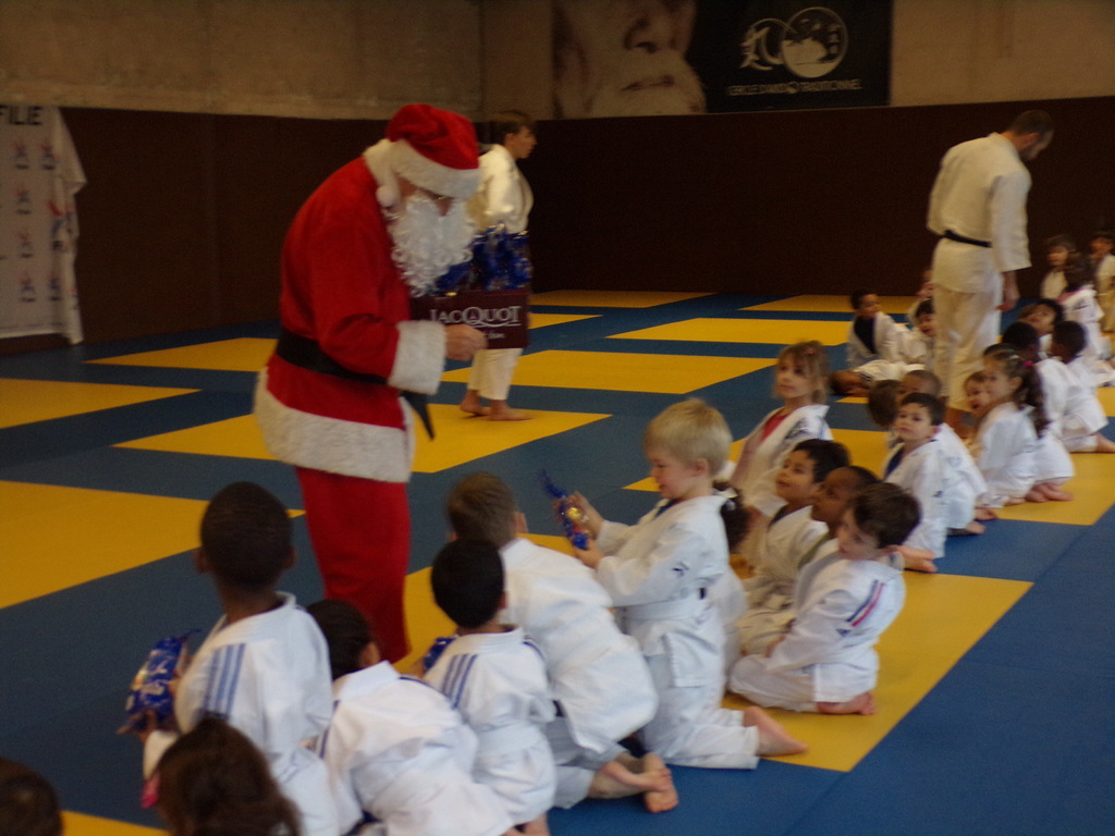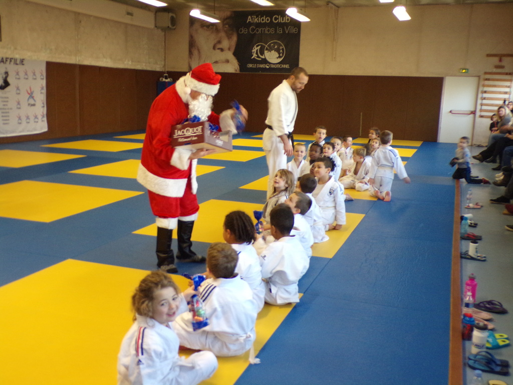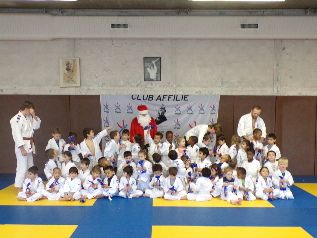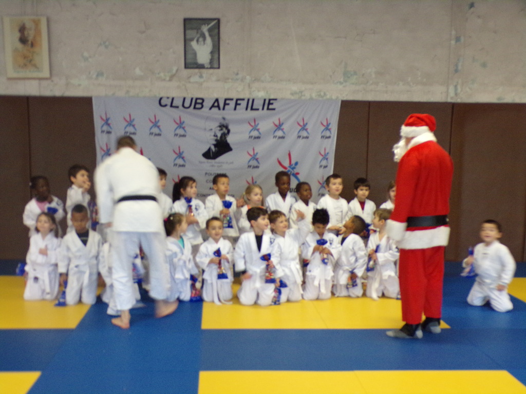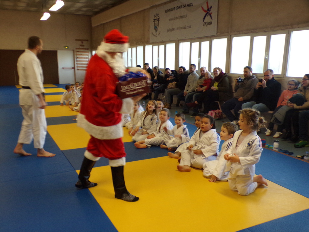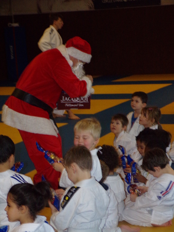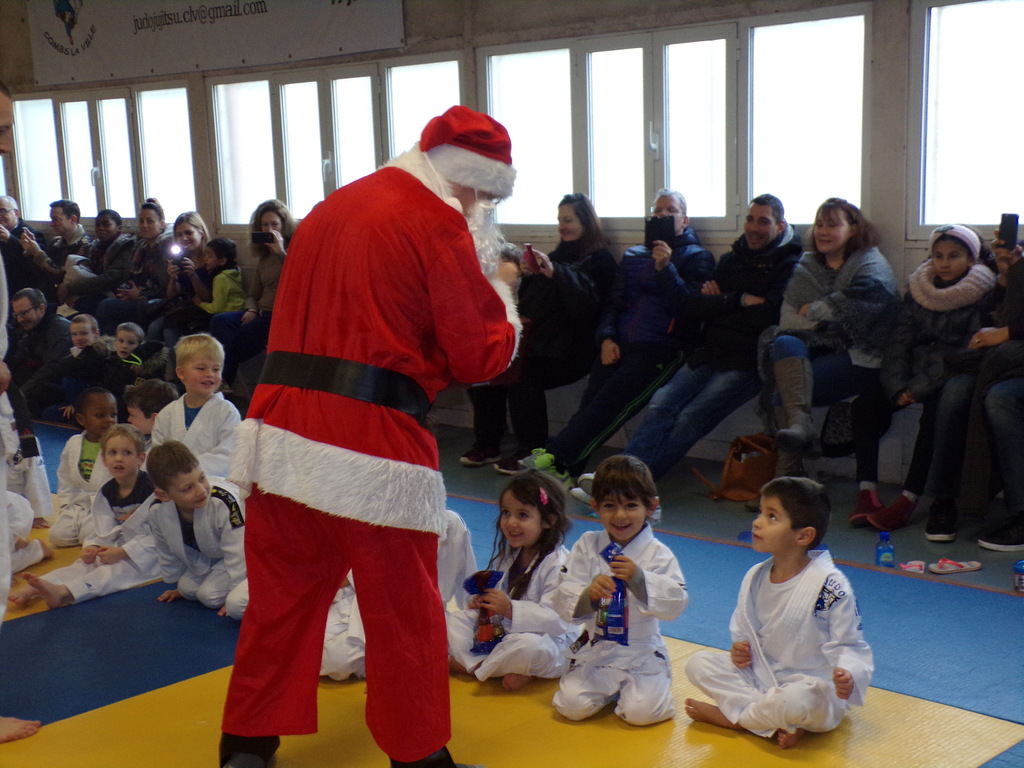 Samedi 16 décembre, le Judo Club de Combs a réçu le Pére Noël venu distribuer des chocolats et faire une photo avec les enfants des cours de Baby I à Mini Poussins I.